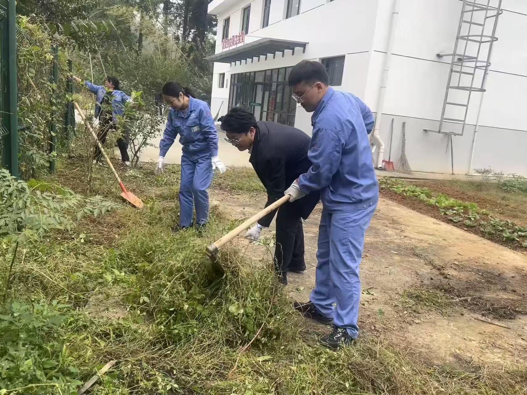 下午三点,志愿者们陆续抵达食堂门口,他们手持镰刀、锄头、铁锹等各类清扫工具,有条不紊地开启清理工作。行动过程中,志愿者们明确责任分工,确保整治工作无死角、无盲区。他们针对食堂出入口、外围通道、垃圾桶存放点等高频使用区域展开深度清扫,重点清除油污、积水与杂物,同时规范垃圾分类投放,杜绝异味产生;对于食堂周边排水沟、下水道等易藏污纳垢的部位,开展疏通清淤工作,防止堵塞引发环境问题。对路边杂草、路面树叶进行清除、清扫,让食堂周边环境焕然一新。